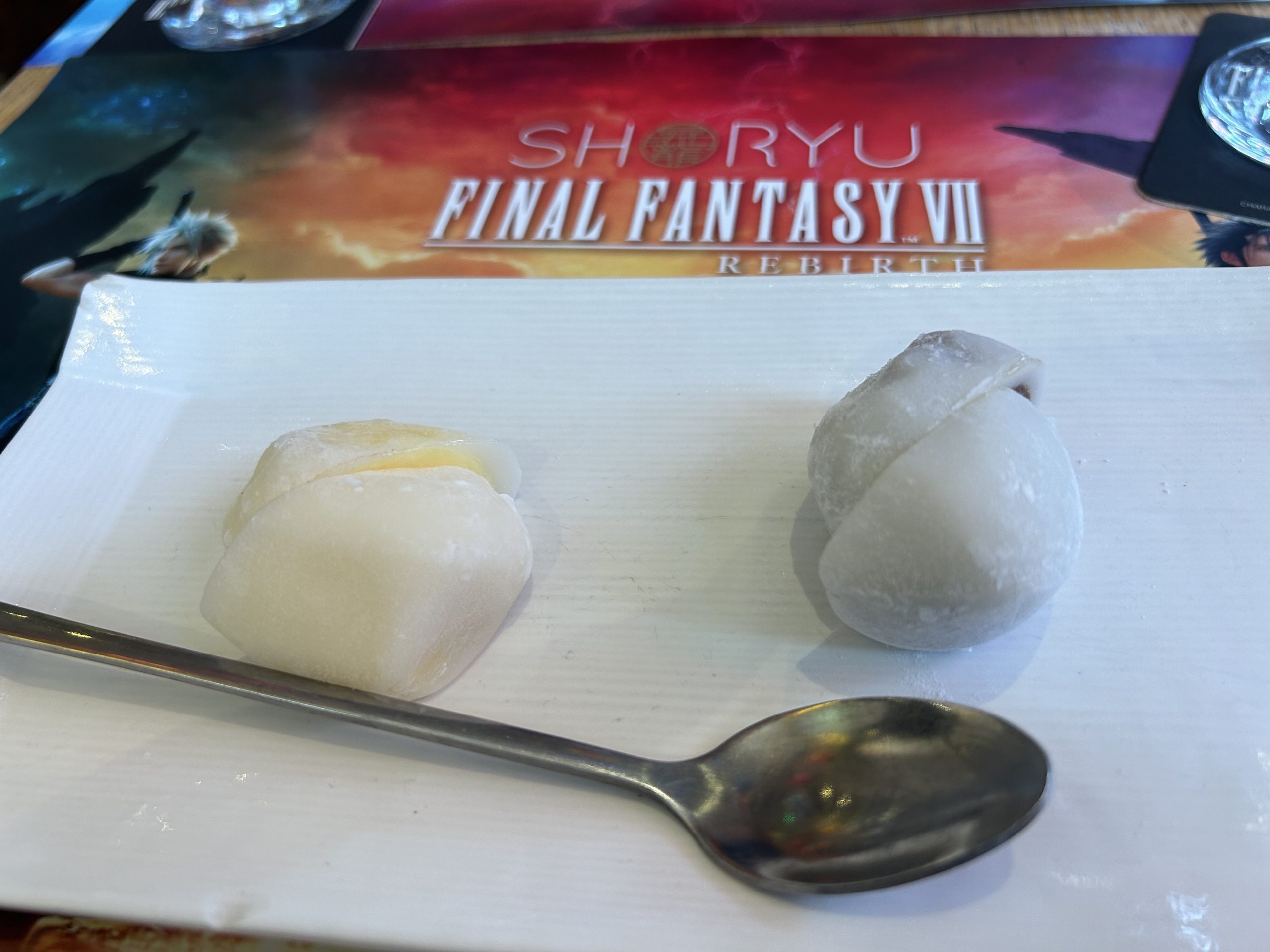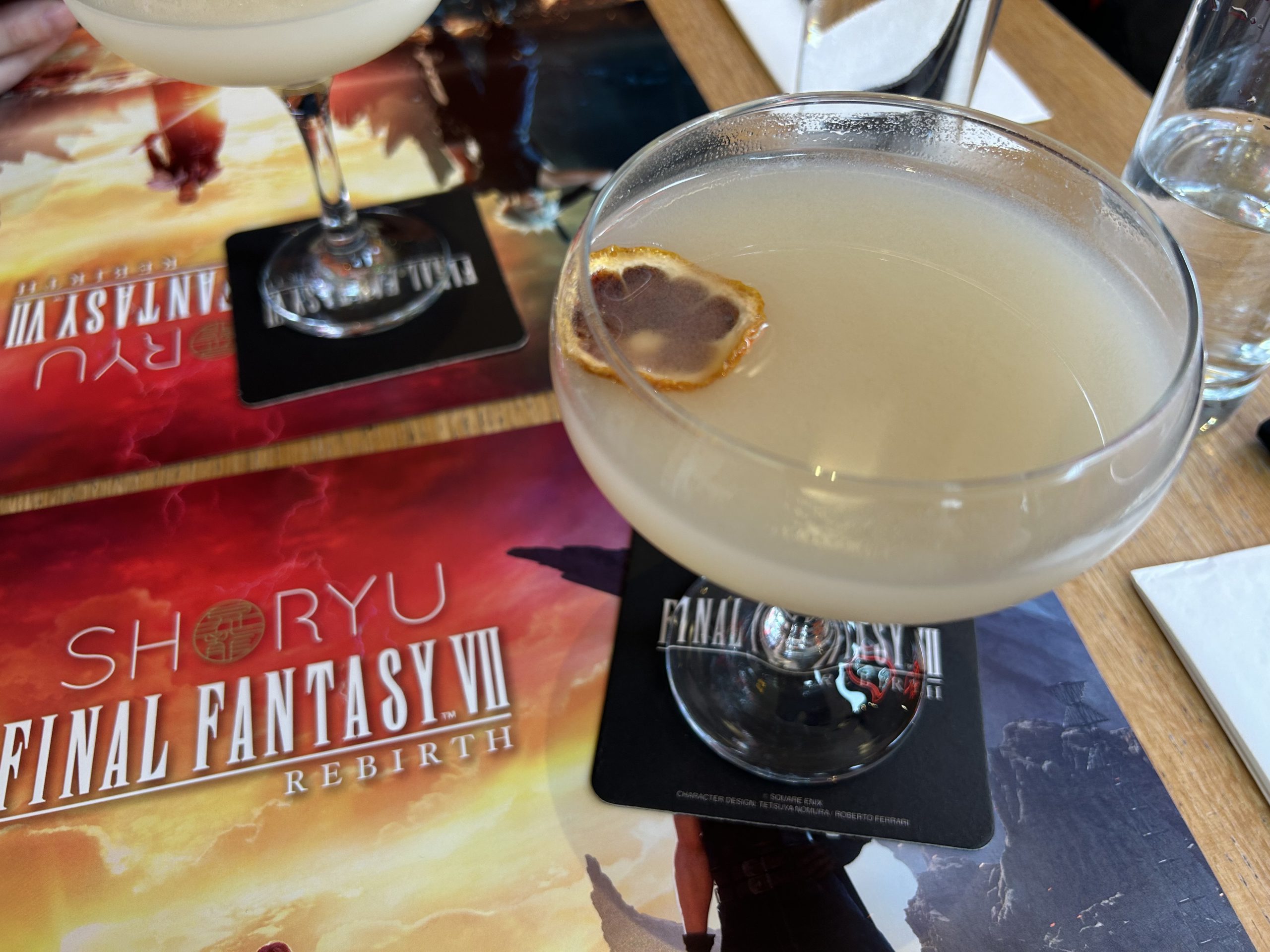The food overall at the Shoryu Ramen x Final Fantast VII Rebirth Set Menu was fantastic, as expected from Shoryu. I do feel they could have done more special theming – last time, they had little feathers on the cocktails and cute flags on the food. I do wish this menu had a few more touches that nodded at the game. The place mat had very fun art, and we both enjoyed our coasters!