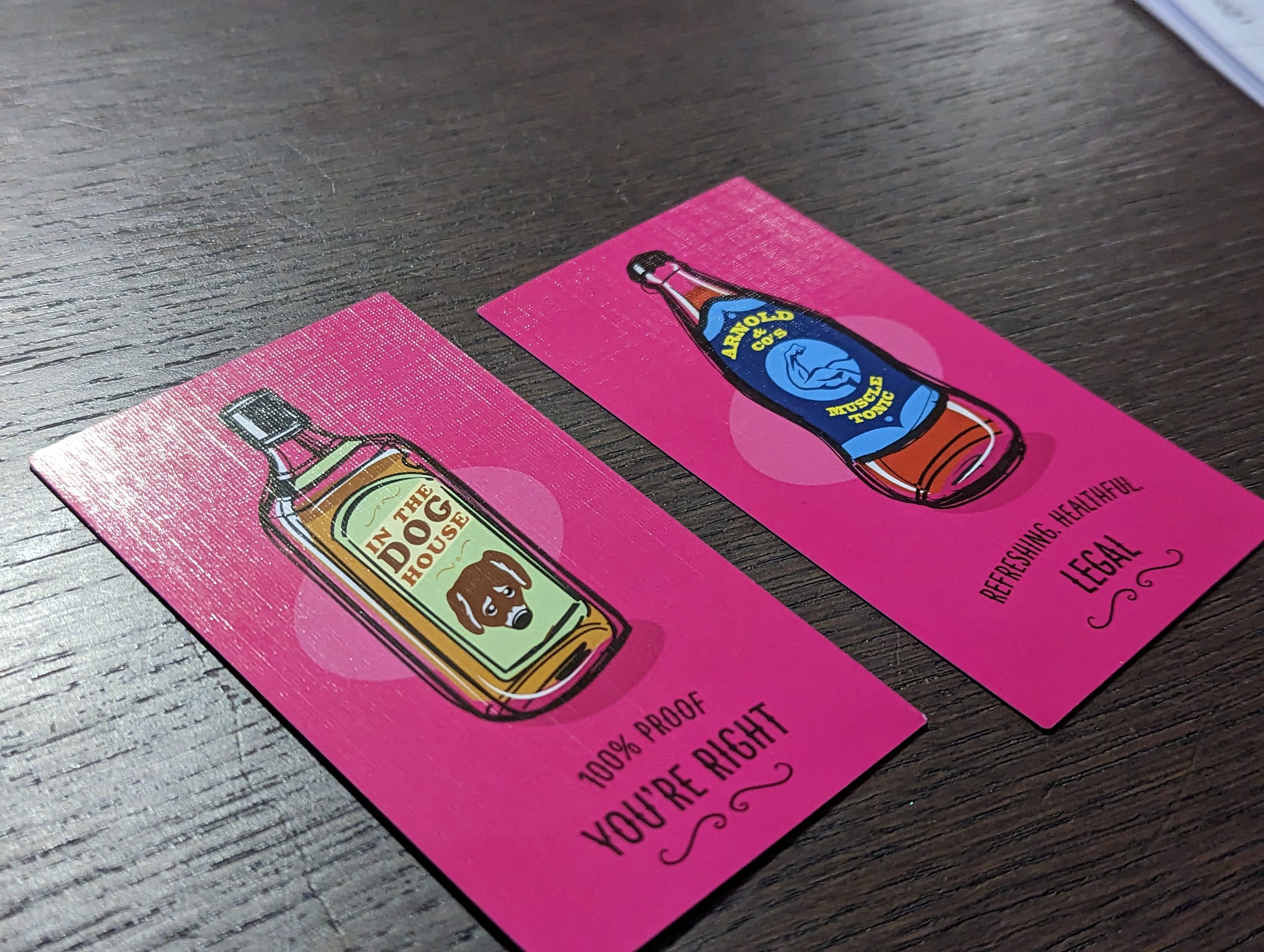 You or your team are working together to attempt to gain a bunch of different drinks. Each card that has a question on it has a drink on the back. You will need to collect a specific amount of these drinks in order to win, but doubling up will not count. Mr Lister’s Quiz Showdown requires a trivia master, who reads out the cards so each team plays simulataneously. This player gets a mustache as well, to show that they are the games master.