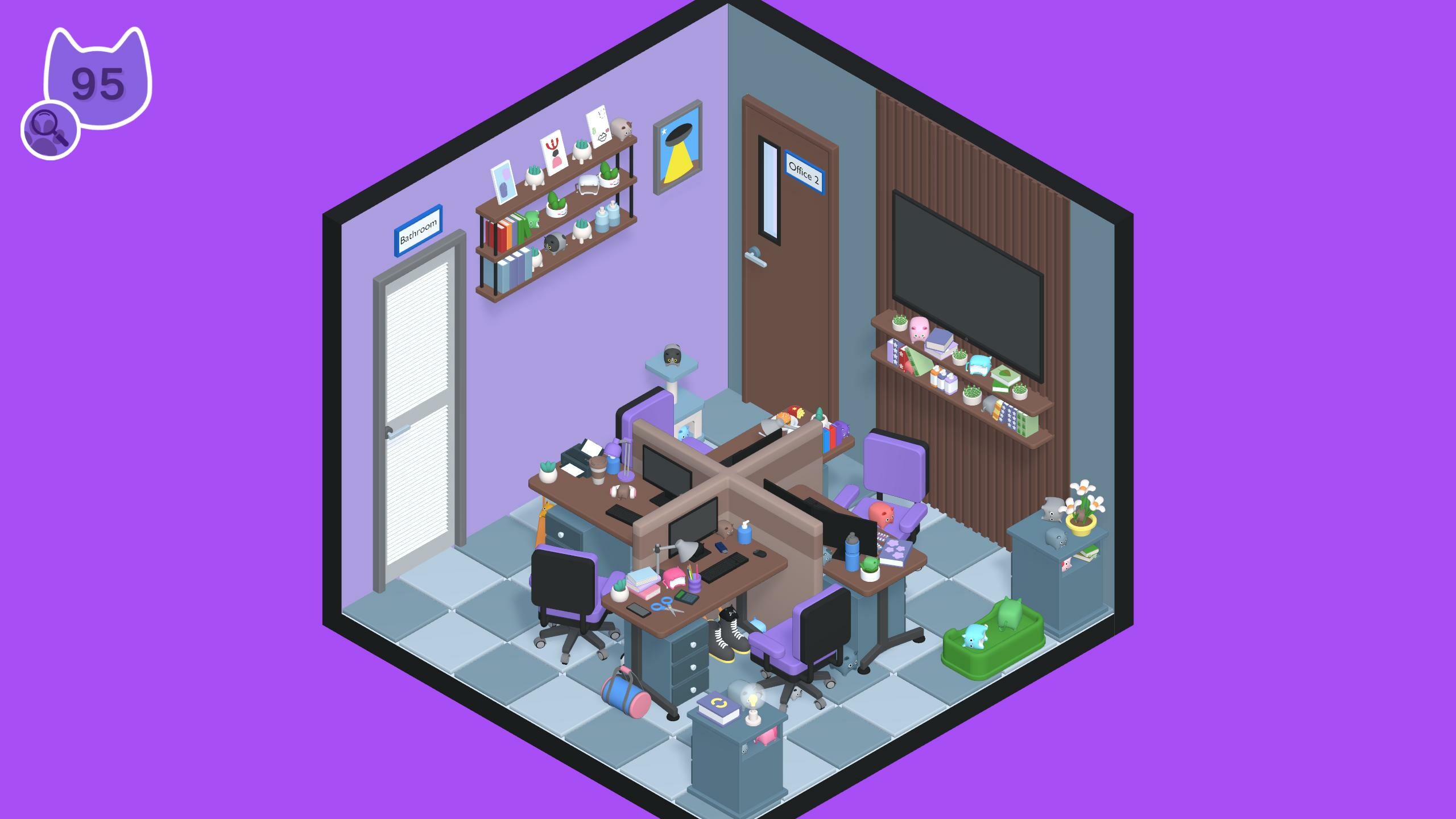 Rotating the room shows different angles, which can reveal some of the hidden cats — it’s almost like there are four levels in each room Instead of needing to complete a level to unlock the next, you can move freely between the entire office floor, with a different number of cats to find in each room.