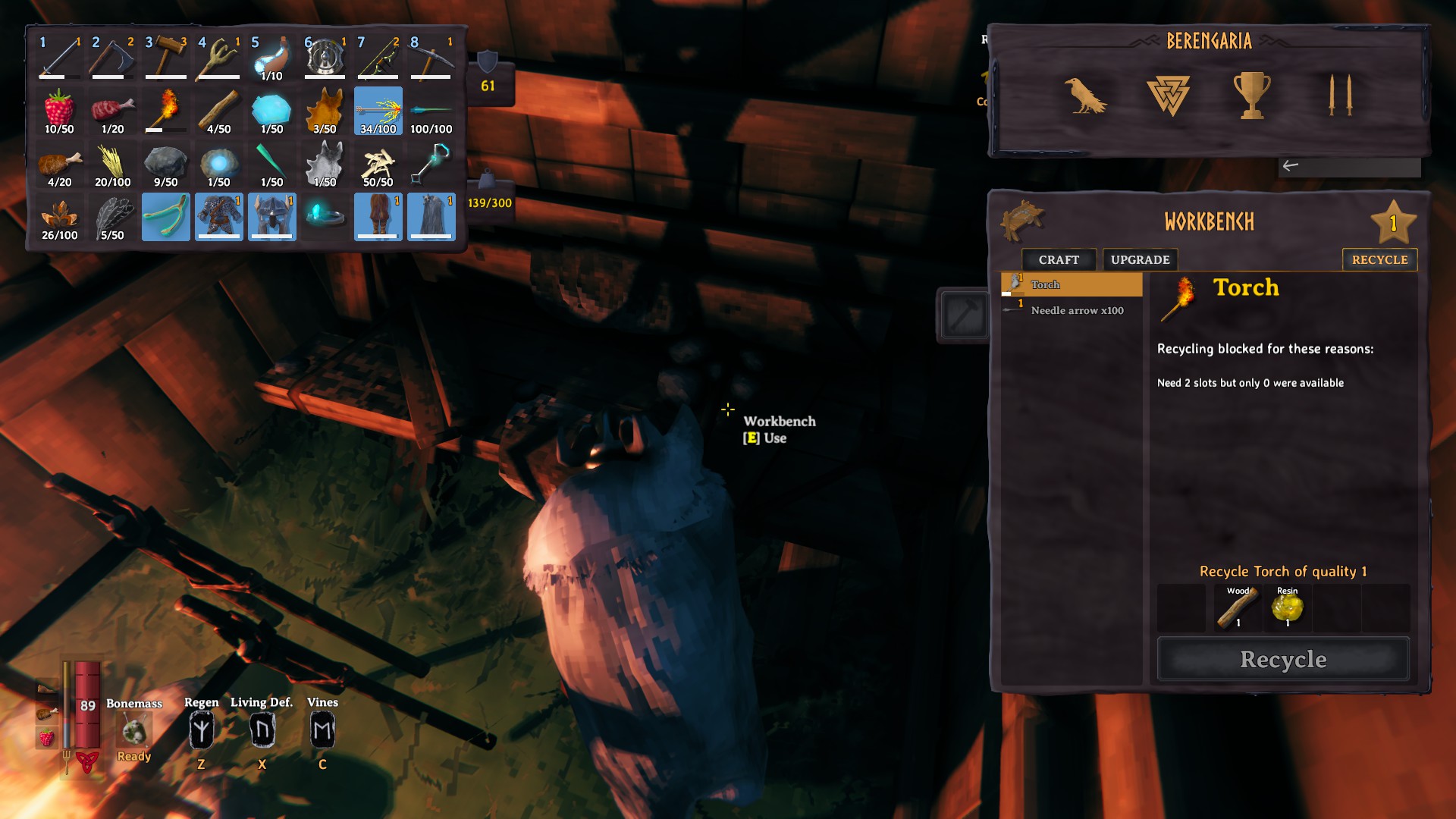 Valheim’s building system is very forgiving, and the fact you can repair items without them truly breaking is a blessing. However, when you progress from one material type to another, you have to create new, higher-tier items rather than upgrading your existing ones. You stand there with your shiny new iron axe in hand and wonder where you’re going to keep the old one. You can’t destroy it. All you can do is chuck it in a box somewhere and forget about it, or pass it down to a new player until you run out of those.