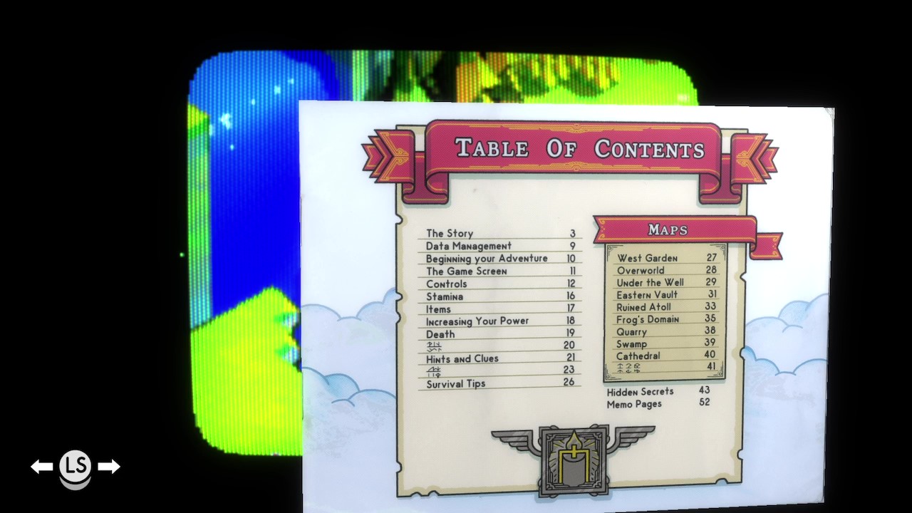 I’ve not found all the pages in Tunic. There’s a rewarding feeling to finding a new page and connecting new dots. There are also bigger layers of mystery inside these pages that I’ve yet to figure out. These mysteries can be obtuse but I appreciate the way this challenge is presented in-game manual form. This game manual is an important mechanic of Tunic and it wouldn’t feel the same without it.