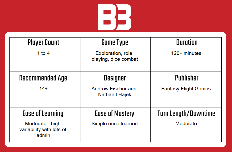 Whilst the setup time is quite long and the game requires a fairly high level of administration, once it gets going, things improve rather rapidly. Games that tell such organic, well woven stories effortlessly enough to integrate combat, player development and a modular board are rare.