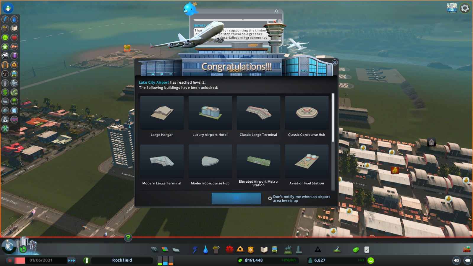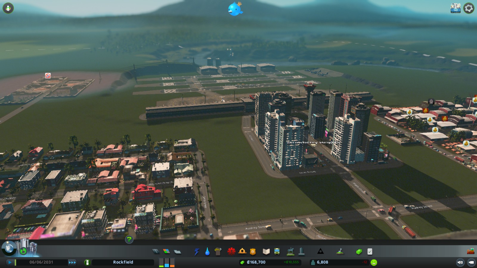 Having a dedicated airport area, rather than simply the old airport building, brings a tonne of benefits with it. For a start, land value rockets, and while there are definitely issues in having buildings in close proximity to it, the public transport terminals that come with the expansion make it really easy to run transport networks from the airport and that means that you can use the surrounding areas really strategically. Here’s where my mention of After Dark comes in; Slapping a tourist-centric commercial district near the airport completely opens things up, and massively opens up your route to earn money through tourists early on.