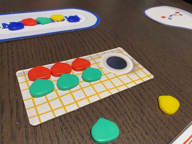 The round is then resolved by doing the action on the smallest die (picking that number of buns from the bag), then the medium die (selecting a bun from the middle plate, of the same color as that side of the die shows. It’s worth noting this die can have more than one color showing, allowing a player to pick any of those colors), then the largest die (which allows you to steal from other players, swap with players, and more), before passing them all forward. I feel that this concept of rolling, dividing, and then being left with the leftovers of your turn is quite fun, especially as there is a lot of simple strategy that you can have while trying to decide what dies you want and what dies you should divide together to make it happen.