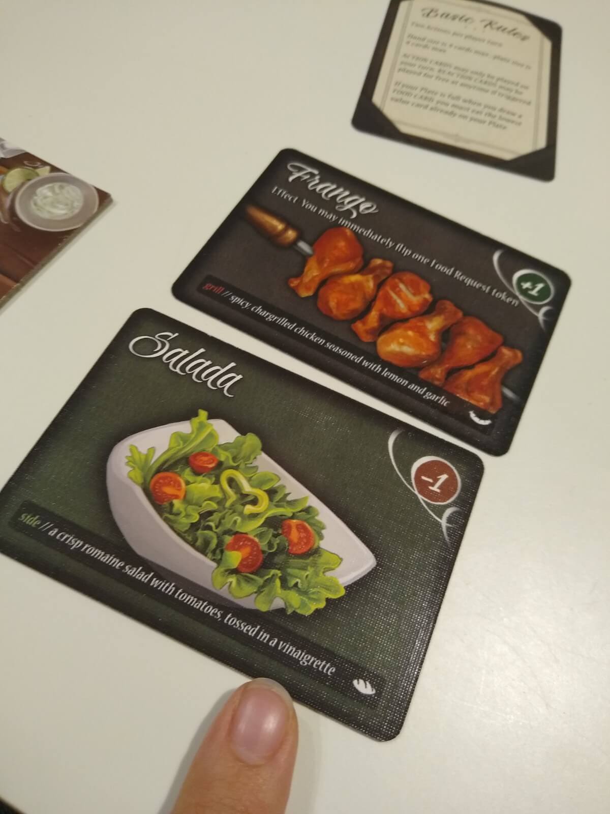 - Flip over any food request token (the tokens with a red side or green side) on the table