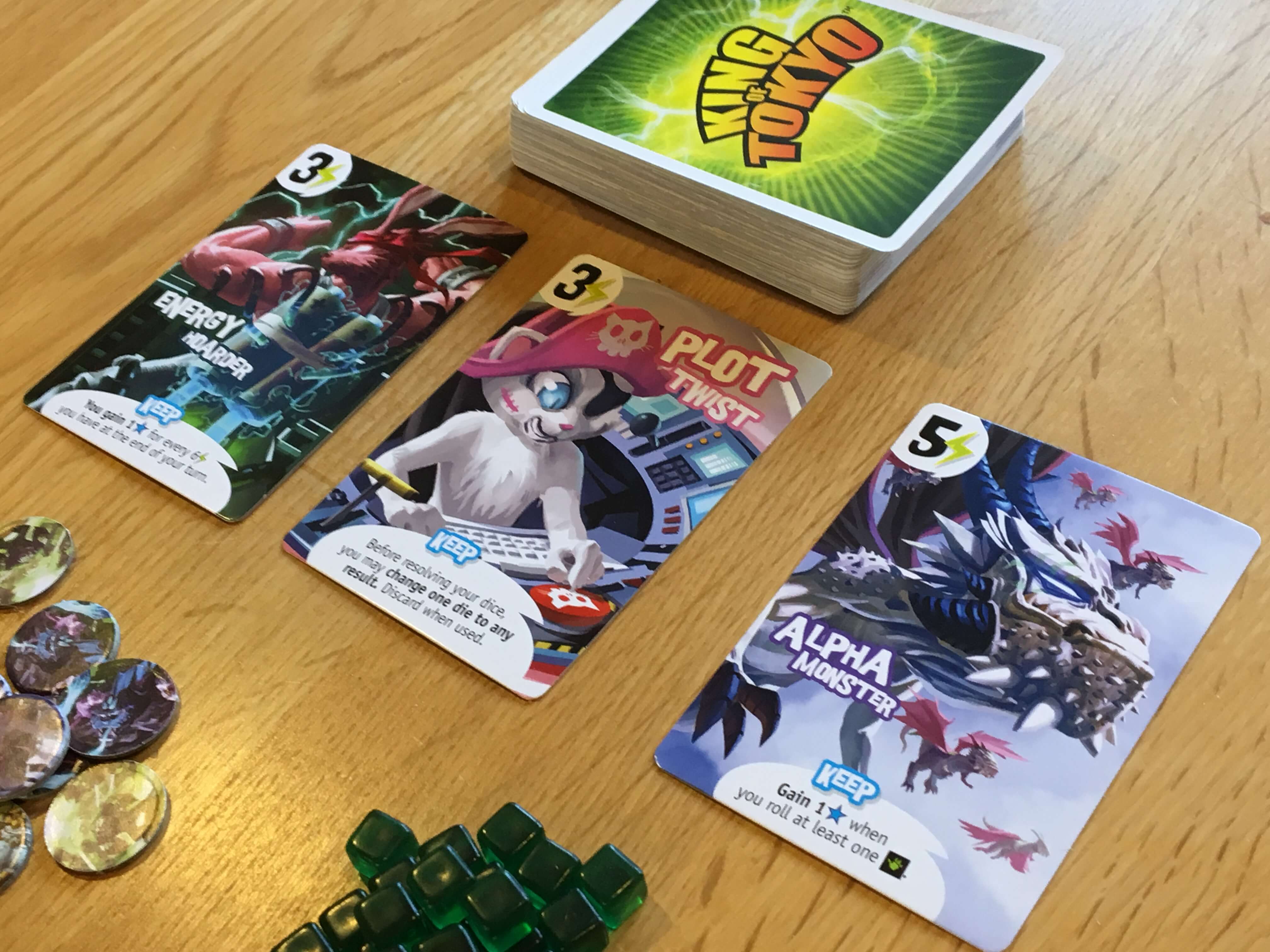 From the very first dice roll, King of Tokyo is an addictive, exciting showdown between increasingly more engaged players. Winning or losing is only occasionally related to who played best, but there are enough influencing factors between the dice rolls and power cards to make it feel like player decisions have a significant impact.