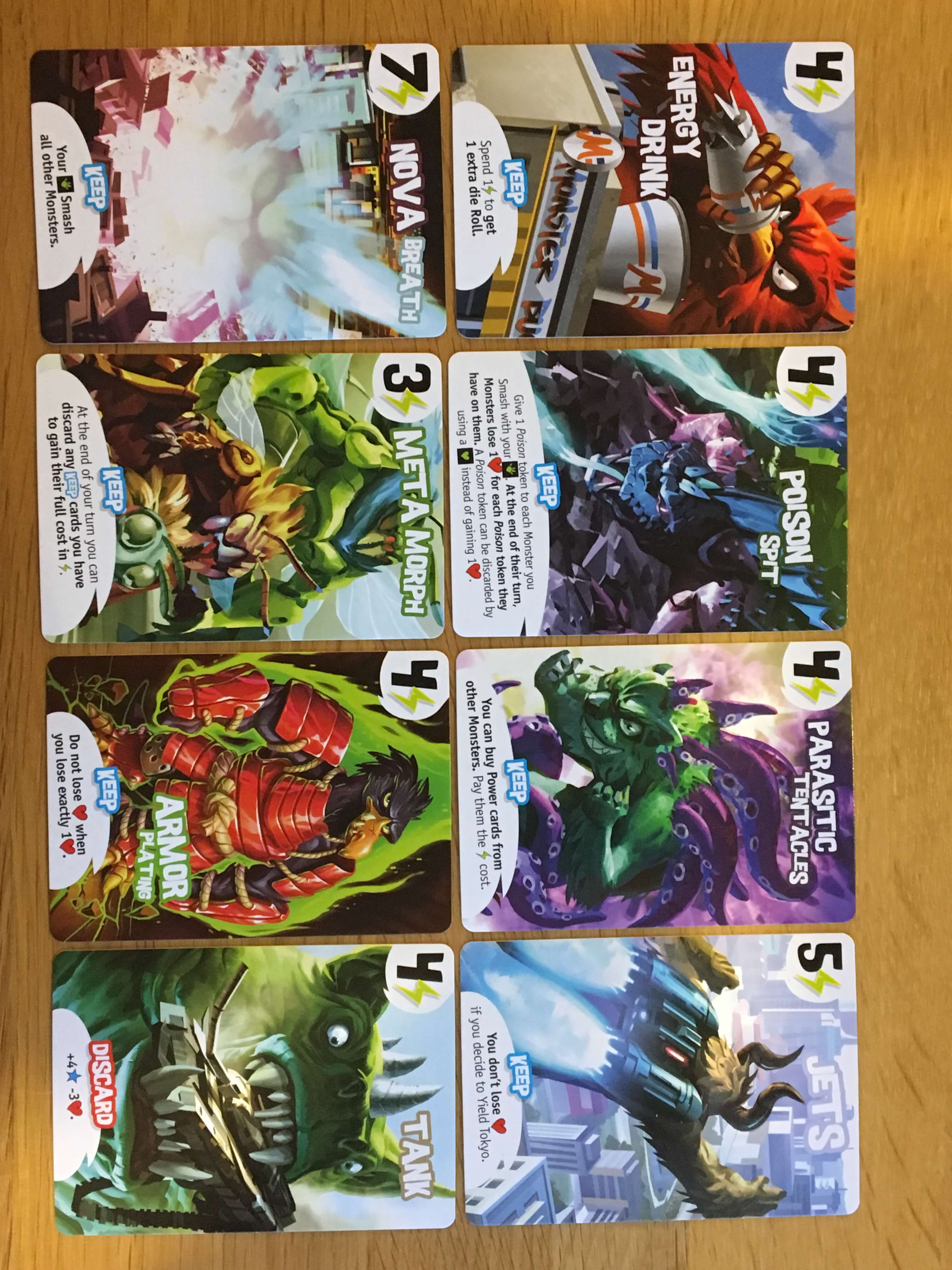 The inclusion of power cards is what really allows the game to develop a sense of individuality, where it might otherwise have been too focussed on lucky dice rolls. Skills like Energy Drink, which introduce extra rerolls, or Parasitic Tentacles, which allows you to mess with other players’ cards, are seriously impactful — there’s very little filler among the deck and it is actually rather large.