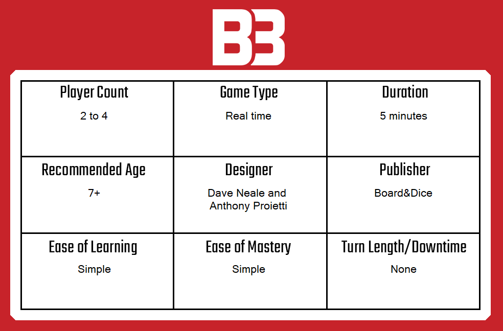 A copy of 5 Minute Chase was provided for review purposes. You can find out more about 5 Minute Chase on the website of publisher Board&Dice.